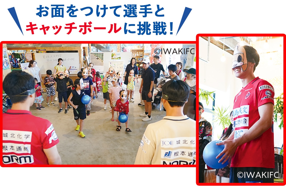 その後、完成したお面をつけて選手とキャッチボールをすると、限られた視界に四苦八苦。あまりの見えにくさに泣き出しそうな子どももいて、「見える」ことの素晴らしさを、あらためて体験していただきました。