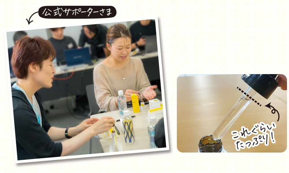 ビタミンCのクイズの後は、ロート独自の技術を実際に皆さまに実験いただきました!驚きの声があちこちであがりました♪