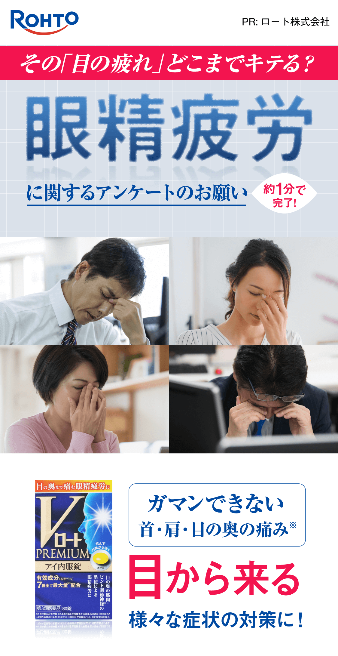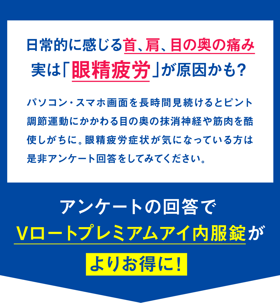 Vロートプレミアム アイ内服錠| 眼精疲労についてのアンケート